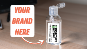 Provide attendees with a travel-friendly giveaway at registration. NAFA will provide small hand sanitizers with your company’s logo in bins at or near the registration area for attendees to grab as needed. Everyone can carry your logo around and thank-you for keeping them germ-free.